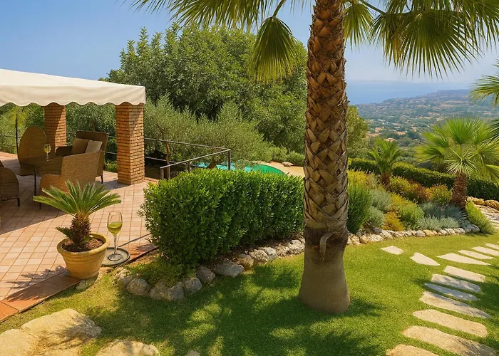Willa Belle Vue Sarmuci dysponuje tarasem z widokiem na ogród, 56 min jazdy od lotniska Trapani Birgi.